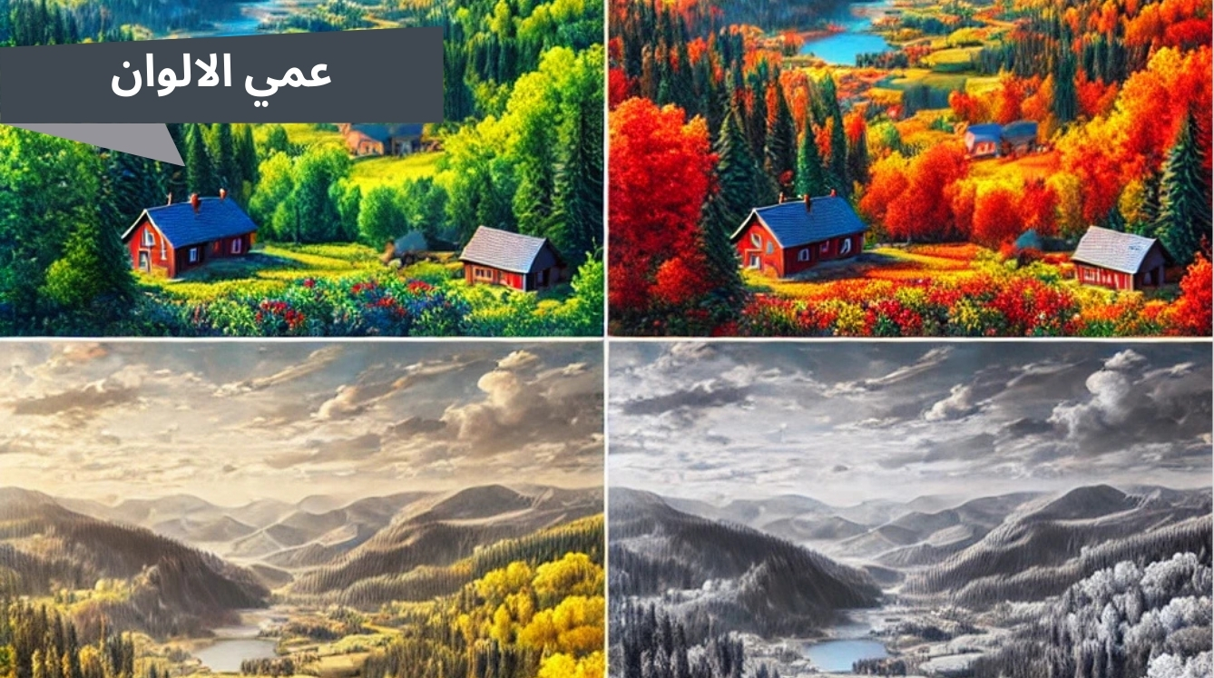 - عمي الالوان الكامل: نادر جدًا ويجعل الشخص يرى العالم بدرجات من الرمادي فقط، وكأن الصورة خالية تمامًا من الألوان.